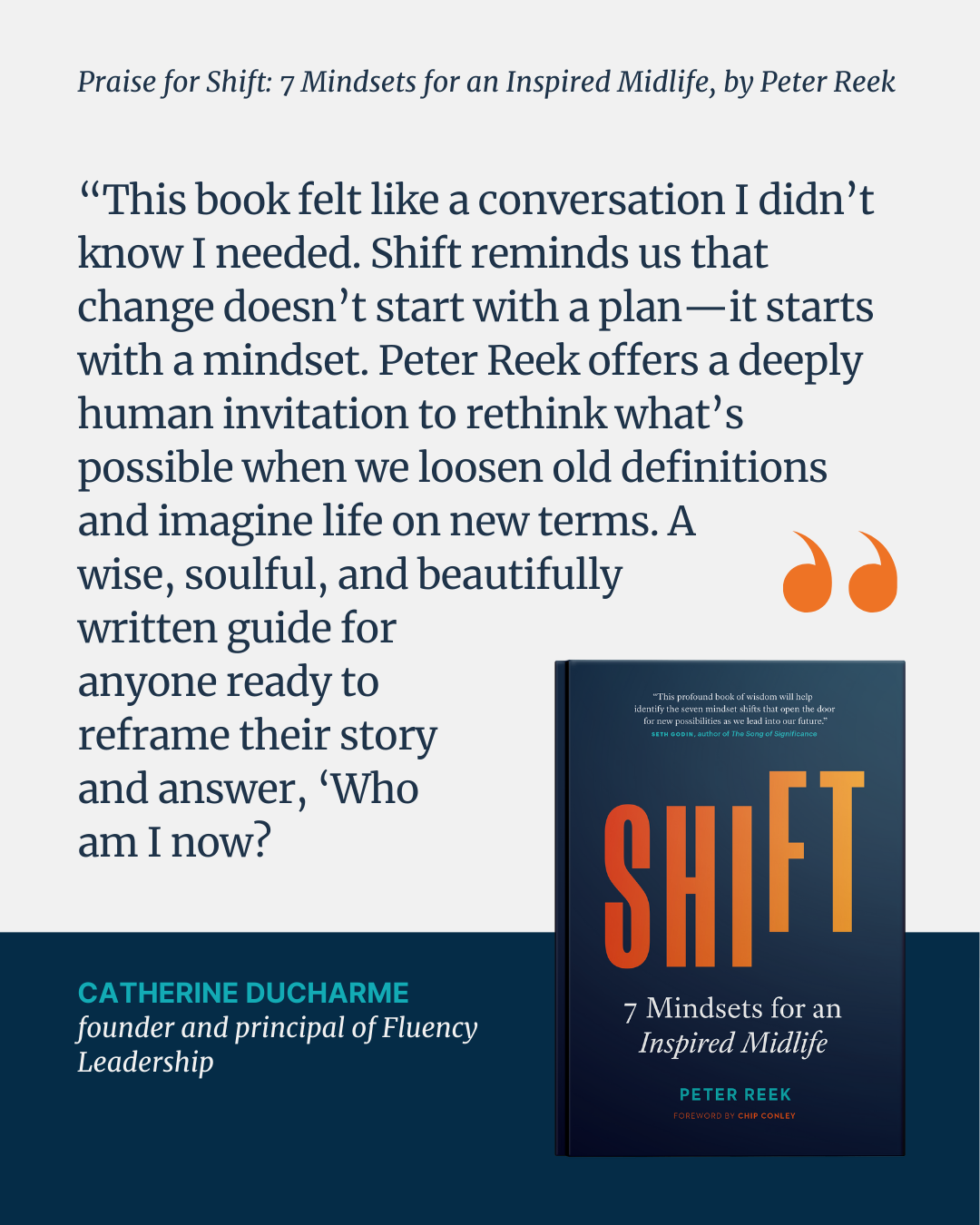 His book, SHIFT – 7 Mindsets for an Inspired Midlife, is a reflection of that journey — a practical and soulful guide for those ready to lead themselves well, tell themselves the truth, and practice radical acceptance in the second half of life.